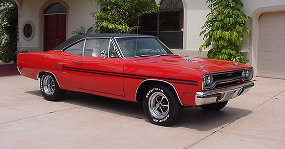Ivan Kron of Florida is the proud owner of this rare bright red FE5 440+6bbl. 4 speed GTX. With only 77,000 miles on the GTX's odometer and its many options, this is a very desirable musclecar. The car was ordered new from Yanda Motors in Wisconsin as a Y14 sold car, meaning it was special ordered by the owner. Among the many options ordered on the car included the console 4 speed, track pac (3.54 Dana), power disk brakes, power steering, left and right outside door mirrors, hood pins, tic-toc-tac, airgrabber hood, AM/8 track radio, factory undercoating, door edge guard moldings, light package, and black vinyl top. What makes this 6bbl. GTX more rare than being one of the only 350 built for 1970 is the white bucket seat interior. The car is well documented with the original buildsheet and window sticker. (11-25 to 12-26-01)