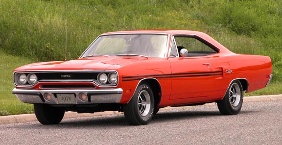 I have the documentation that shows the car was sold new in Martinsville, VA to a woman.. Yes, I said a woman bought this GTX new. When I bought the car it had 64,000 miles on the odometer. After purchasing the car, I took the car and drove her on the street with a weekend race or two; as often as someone would say "you wanna run"? This car had many of the original assembly lines parts when I bought it, like paint, matching numbers engine, transmission, 8 3/4" rearend, all the interior, radio, and dual snorkel air cleaner were all intact, not even one added chrome piece on this GTX, except for the Keystone mags. All the little date coded parts were 99% intact, and get this, even the factory date coded starter was still on this car and still worked! Has anybody seen a Chrysler starter last over 30 years and 78,000 miles? I have! The alternator is the original, too. I repainted the car 15 years ago and started putting her all stock including decals and correct plating, and even the special muffler clamps. This GTX is just she came from the showroom except for a few items that I added like: tic-toc-tac, right outside door mirror, AM/FM radio, and the road wheels. I still have the wheel covers and steel wheels that is coded for this car. My GTX has only 79,000 actual miles now and has always been garaged since I took ownership. The interior includes black high back bucket seats, column shift automatic, and EV2 "tor-red" paint on the sheet metal. I have done this complete restoration over many years and if I can find them, I always buy NOS parts!!! Always! The only way to look good.